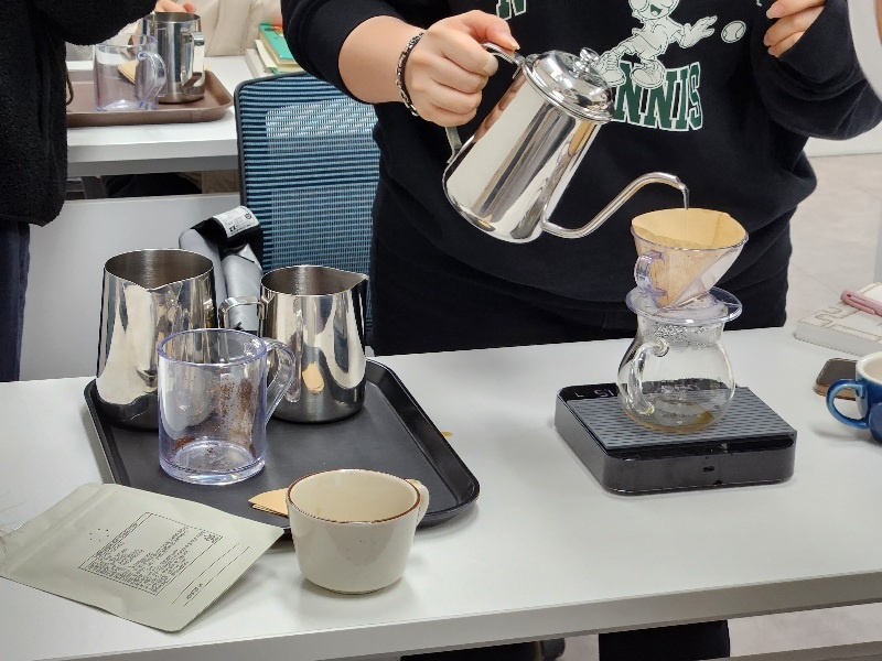 수강생님께서 직접 핸드드립을 해보시는 모습이에요.