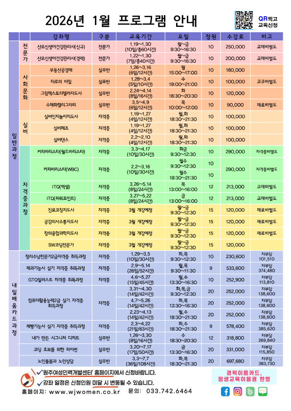 원주여성인력개발센터는 올 한 해도 여러분의 성장과 삶의 질 향상을 위해