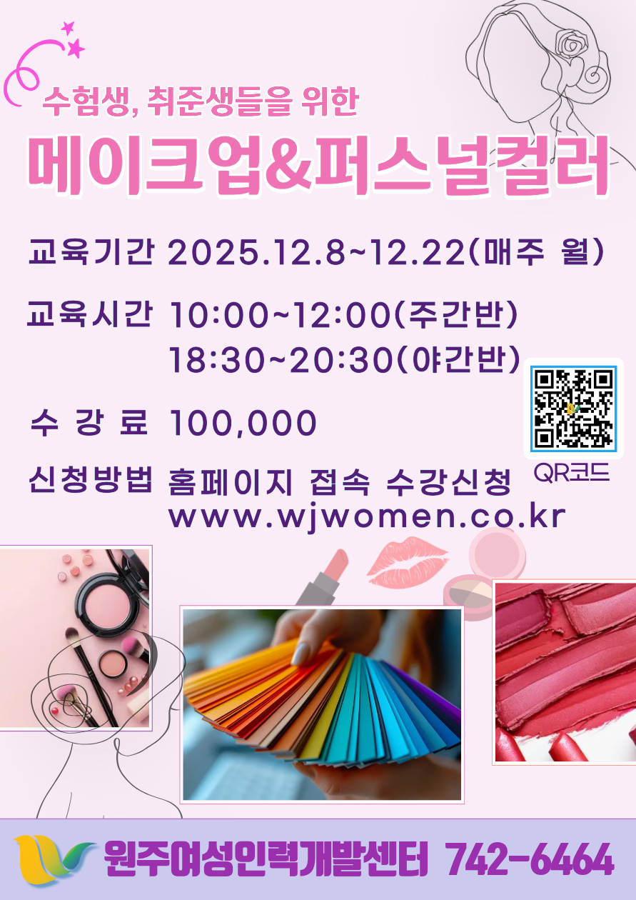 메이크업 & 퍼스널컬러 교육을 통해 세상에 단 하나뿐인 ‘나의 색’을 찾아보세요.□ 교육 대상