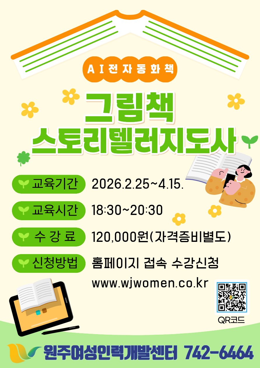 본 강좌는 글쓰기 기초부터 전자책 구성, 표지 디자인, 플랫폼 등록까지 출판 전 과정을 단계별로 체계적으로 학습할 수 있도록 구성되었습니다. 특히 유아·아동·교육 콘텐츠에 관심 있는 분, 그림책 작가·스토리텔러·강사 활동을 꿈꾸는 분들께 적합한 과정입니다.