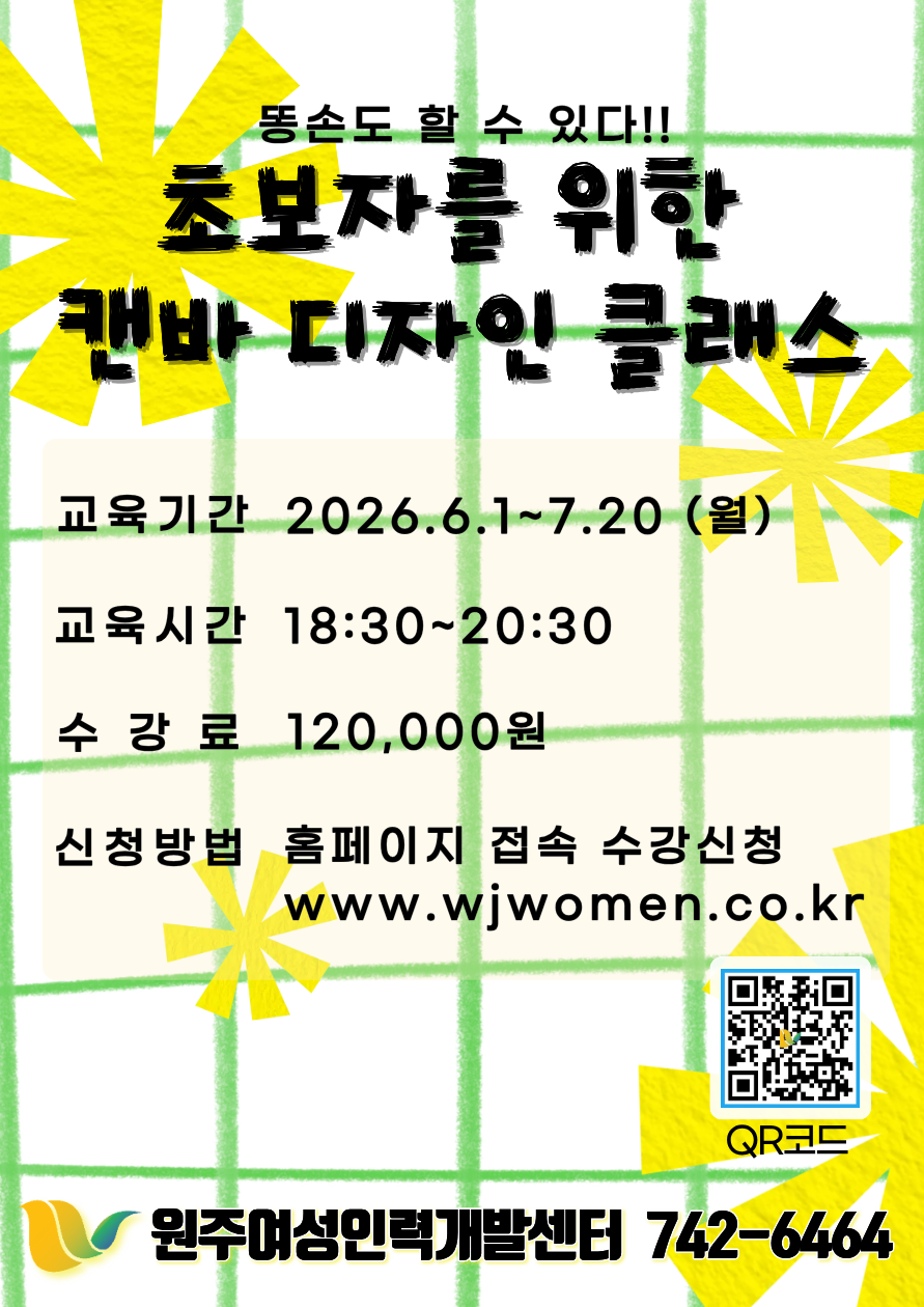 누구나 쉽게 따라할 수 있는 캔바(Canva) 디자인 기초 클래스로 홍보물, 카드뉴스, 포스터, SNS 이미지까지 직접 만들어보세요.디자인 비전공자도 쉽게! 실습 중심으로 차근차근 배우는 초보자 맞춤형 캔바 디자인 수업입니다.